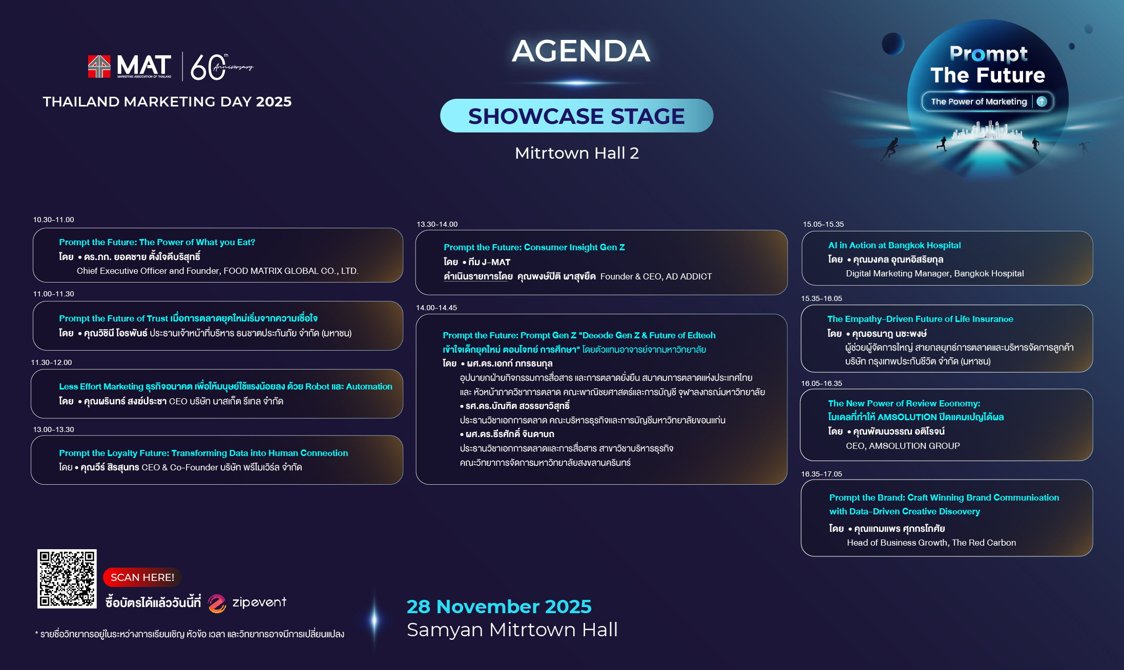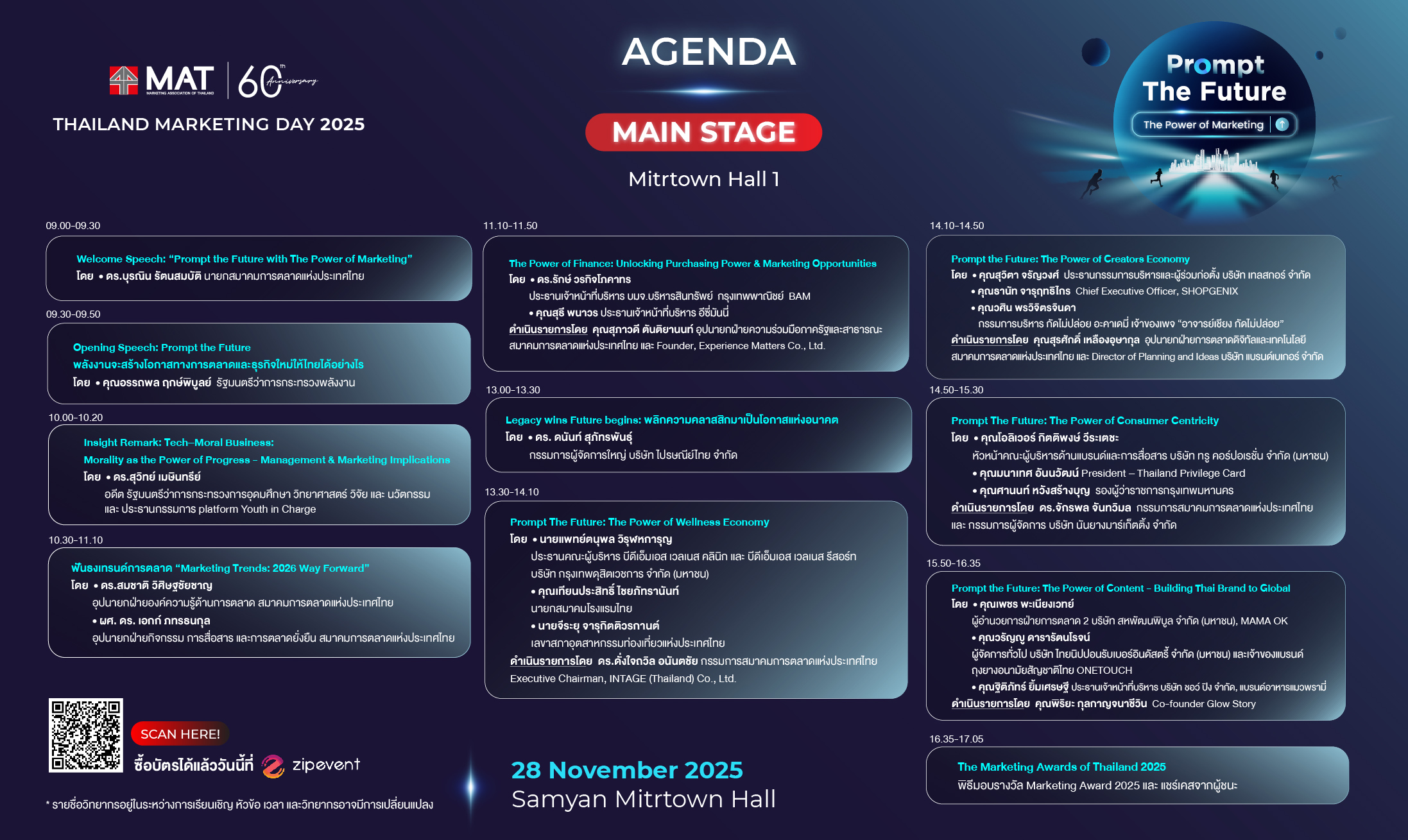 ที่ขับเคลื่อนด้วยพลังของผู้บริโภค (Consumer-Centric) เพื่อให้การตลาดไทยเติบโตอย่างยั่งยืนในโลกแห่งอนาคต กับสุดยอด 2 เวที | 20+ Sessions | 30+ Speakers ระดับหัวแถว!