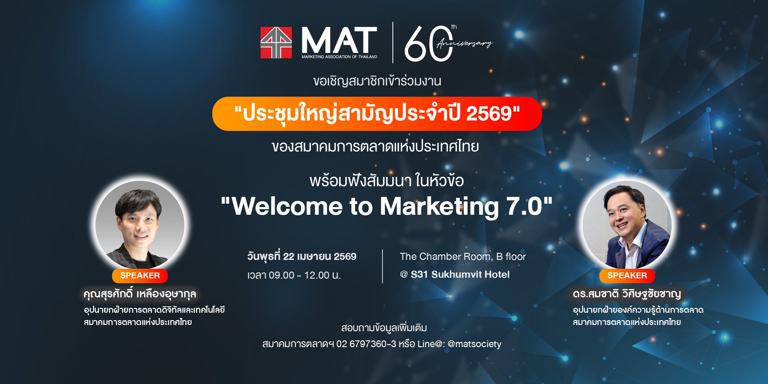 ขอเชิญสมาชิกฯ เข้าร่วมงานประชุมใหญ่สามัญ ประจำปี 2569 ของสมาคมการตลาดแห่งประเทศไทย